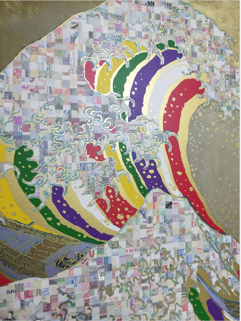 TARTAROS Realcamo World AutomaticWAVE JAPAN五色 ¥184,800 税込 発送目安日:3週間以内 この商品は返品/キャンセル不可になります 注文 サイズ(採寸)情報 質問する お気に入り お電話でもご注文いただけます!お電話の際は 商品番号:564 をお知らせください。 電話をかける 076-256-1618 駐車場について 施設前道路は駐車が可能なエリアです。 その他施設裏に専用駐車スペース4台ございます。 H W 442 668 単位:mm 商品説明 五色幕から引用した五色の波で、華やかさと祝祭感をイメージ。祝い事で使われる五色幕の五色はインド哲学の五大や中国の五行思想に基づくとされ古くから日本の寺院で使われています。 限定edition30。 フェイクが溢れる曖昧なリアリティを「カモコラージュ」で表現したRealcamo。 「カモコラージュ」はカモフラージュとコラージュを混ぜたリアルフェイクの技法。 本物紙幣を刻んで、印刷した版画に隠しました。本物を探す時、リアルフェイクで構成されたカモフラージュ世界、現金が消えデジタルマネーに変わる現代に迷い込む。 作品タイトルは同じ紙幣番号は存在出来ない、作品のオリジナル性を国家が保証。 同構図でカラーバージョンが多数作られる浮世絵の引用と、紙幣がランダムにコラージュされたAutomaticPaintingにより全てユニークピース。※写真は見本です。販売作品は新たな紙幣番号タイトルと紙幣コラージュされた作品になります。 GDPトップ5か国の本物紙幣が波の中にランク順にコラージュされています。 引用 葛飾北斎『神奈川沖浪裏』 日本人のイコン像 日本人の自然信仰は、江戸時代と比較して現代はお金。人の信仰の歴史レイヤー、自然もお金も生き物の様に変化してエネルギーを人に与えている。 詳細情報 素材 世界100カ国紙幣カモフラージュコラージュ.ジークレー.シルクスクリーン エディション 2~6,8,10~60 制作年 2023 額装 含む アーティスト TARTAROS 品番 tartaros002 カテゴリ 絵画・平面 > 具象 > 風景 返品 不可 ラッピング 不可 発送目安日 3週間以内 配送方法 佐川急便(160サイズ)(送料について) お支払い方法 本商品でご利用可能な決済方法は下記となります。各お支払い方法についての詳細はショッピングガイドをご覧ください クレジットカード 店頭 銀行振込 お振込はご注文確定から3営業日以内(金融機関休業日は除く)にお願いします。期日内に確認が取れない場合はキャンセルとなる場合があります。 サイズ(採寸)情報 H W 442 668 単位:mm このアイテムをシェア この商品について質問する お問い合わせの入力内容が失われますがよろしいですか?